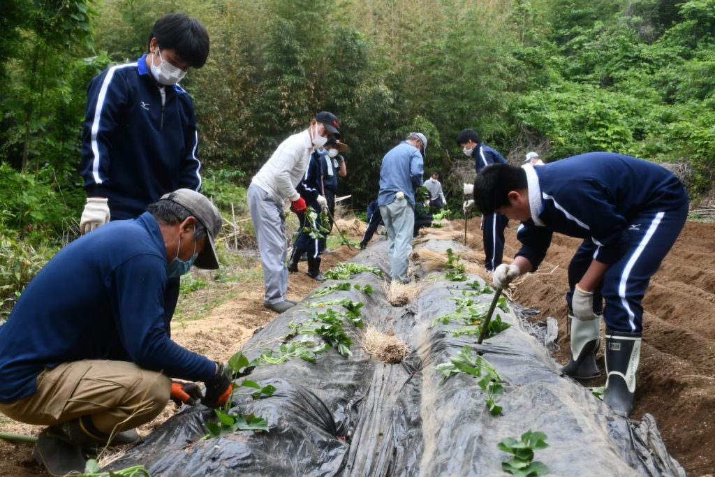 もう一つ、グループが力を入れているのがサツマイモの栽培です。利則さんは、地域の子どもたちから「いもじい」と呼ばれているのだとか。地域の子どもたちと一緒に苗を植え、収穫したサツマイモは「鼓南ふれあい文化祭」や白鳩学園の文化祭などで焼き芋として販売しています。