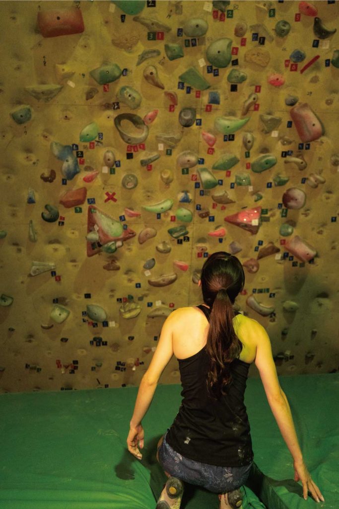 大田さんが現在メインで取り組んでいるのは「リード」という種目。リードとは、高さ15メートルの壁を6分の制限時間の中で、ロープをかけながら登っていく競技のこと。ボルダリング種目を短距離走だとすれば、リードは持久走。体力を温存しながら15メートルを登っていくためのイメージトレーニングを日々大切にしているそう。