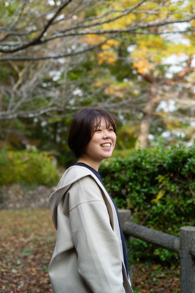 1998年、山口県山口市阿東生まれ。生雲小学校、阿東中学校、山口高等学校を経て、岡山県の大学へ進学。栄養学科で「食」に関する幅広い知識を学び、管理栄養士の資格を取得。卒業後、大阪市内のイタリアンレストランや食器店で働いた後、山口県にUターン。祖父母の住む周南市鹿野で地域おこし協力隊の募集があることを知り、応募。2023年5月、周南市から委嘱を受けて、鹿野・大潮地域の地域おこし協力隊に着任。「大潮田舎の店」で販売している大豆加工品の商品改良や新商品の開発などに取り組む。任期後の2026年、鹿野に飲食店をオープン予定。趣味はドライブ。