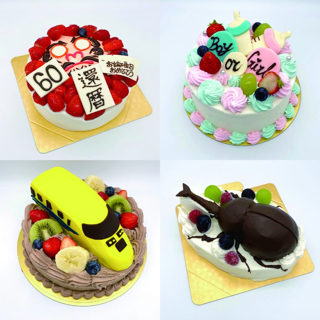 立体ケーキは、お子さんやご両親、友人の顔、アニメのキャラクター、動物、乗り物など、リクエストは本当にさまざまなのだとか。