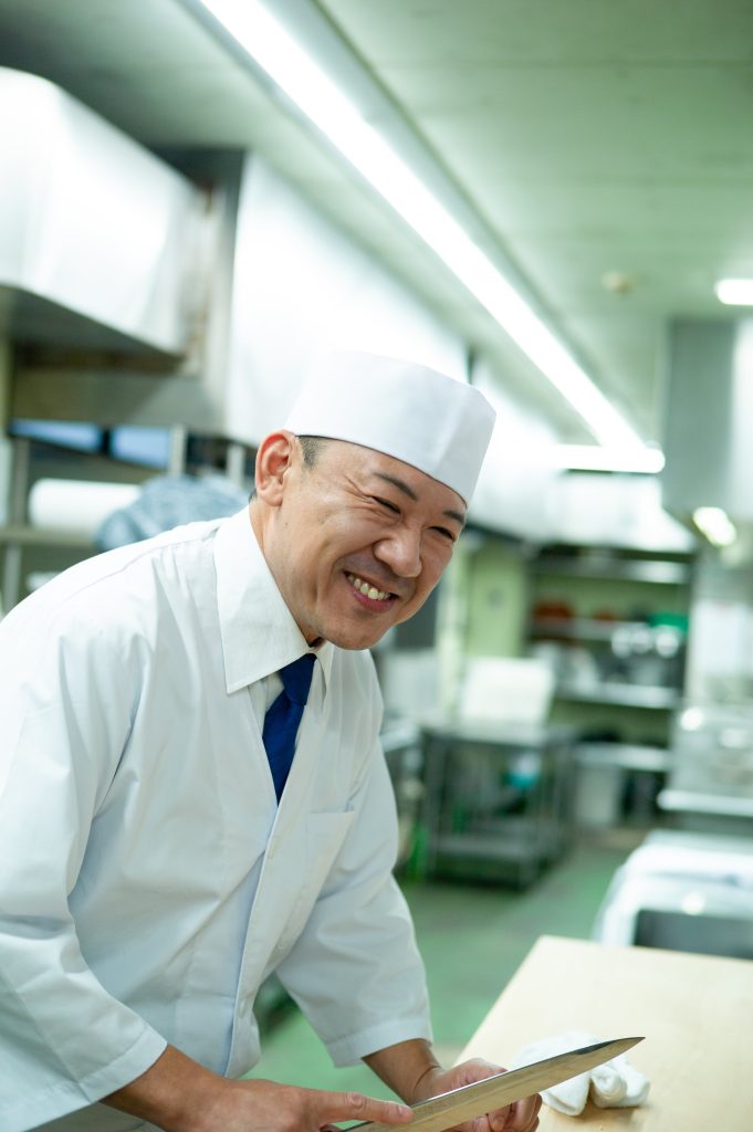 1972年、周南市生まれ。大阪の料亭で修業後、周南市にUターン。周南市内のホテルで料理人を経験した後、35歳で遠石会館の料理長に。何よりの喜びは「お客様からの『おいしい!』という言葉」。料理人の道を歩んで約30年、遠石会館の料理長として13年が経った現在でも料理への情熱は全く尽きないという。