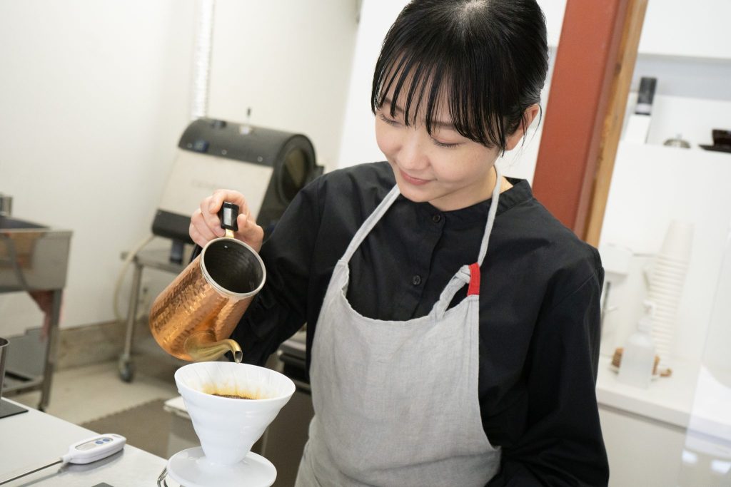直樹さんが焙煎した豆をブリュー(抽出)するのはアンナさん。