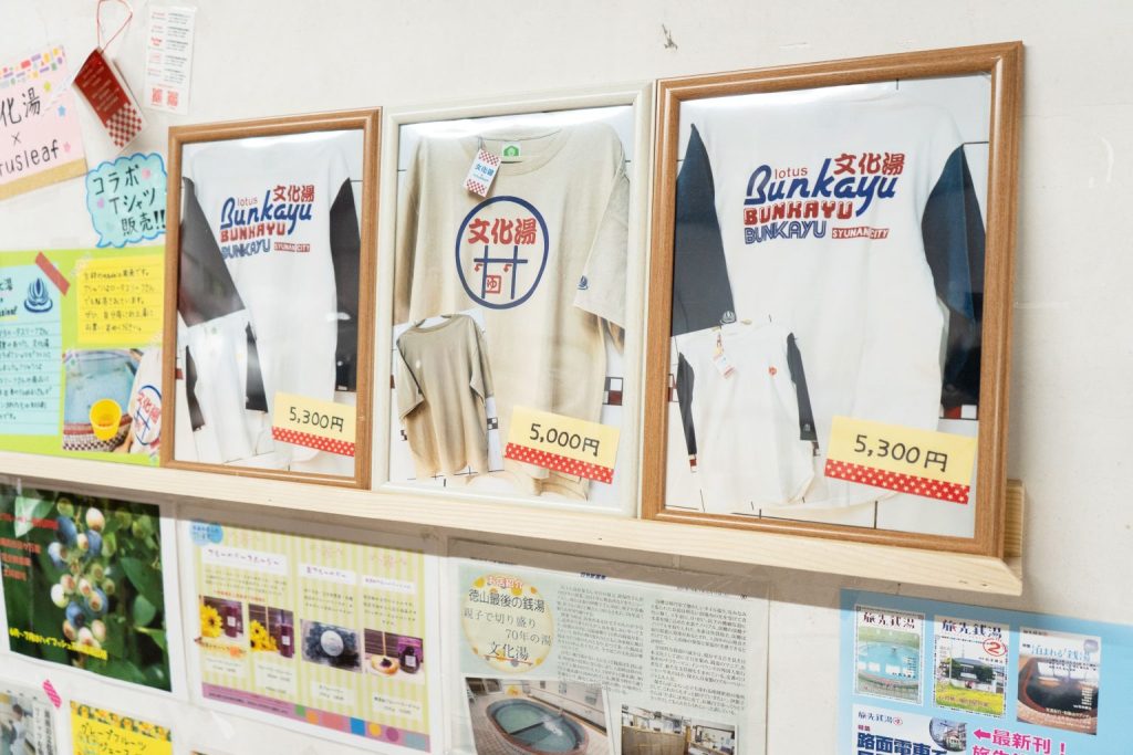 「もともと銭湯を利用されていたセレクトショップ『ロータスリーフ』の店長さんが、コラボTシャツを提案してくださいました。店のロゴや地図の図案をあしらったレトロな雰囲気に仕上がっています。今年5月に売り出したのですが、既にショップでは完売。文化湯も残りわずかとなり、追加注文し、予想以上の反響に驚いています。」