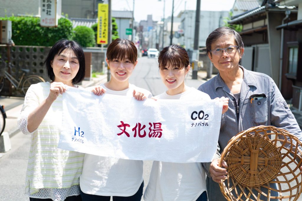 長い歴史を歩み続けてきた文化湯。続けていくためには、老朽化した設備をなんとかしなくては…。そこで、代替わりを機にリニューアルを決意。2017(平成29)年、もともと現場監督をしていた保さんが中心になり、脱衣所の改装や浴槽のタイル割りなどを行い、昔ながらの風情を残しつつ快適な空間をつくりあげました。お湯は地下から汲み上げた井戸水を沸かすスタイル。さらに、他の銭湯にはない設備をと、2018年には男湯・女湯それぞれに水素ナノバブル、炭酸ナノバブルの風呂とシャワーを新設。浴槽の湯は、曜日によって水素ナノバブル、炭酸ナノバブルが入れ替わります。ナノバブルにすることで、浴槽内に滞留する時間が長くなり、水素、炭酸効果を十分に発揮。水素は角質を除去して肌や髪をつやつやに、炭酸は血行促進に効果があるといわれています。入浴中はお湯がやわらかくてリラックス、入浴後は肌がすべすべ、体はぽかぽかに。この体感がスゴいと評判で、電車やタクシーに乗って遠方から訪れる人もいるほどです。