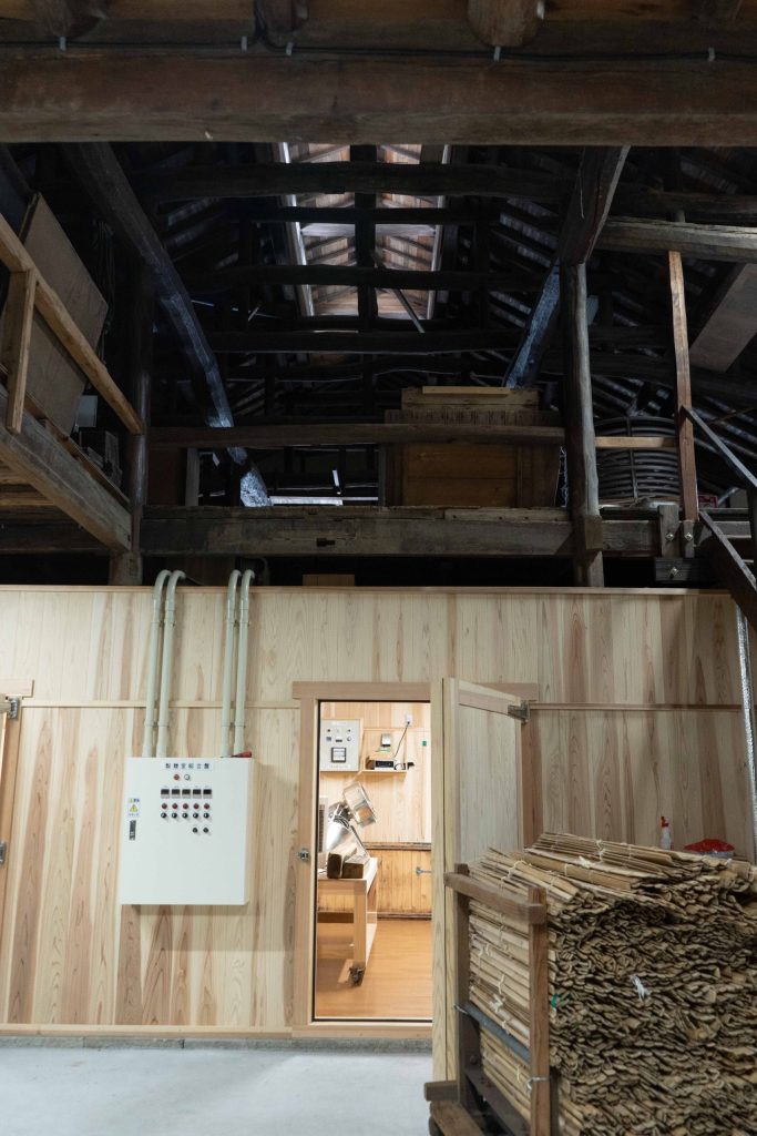 酒造りの命ともいえる麹造りを行う麹室(こうじむろ)を、2021年の改修にあわせて新築したばかり。秋田杉を全面に使用して湿度を調節し、麹にとって最適な環境を整えています。