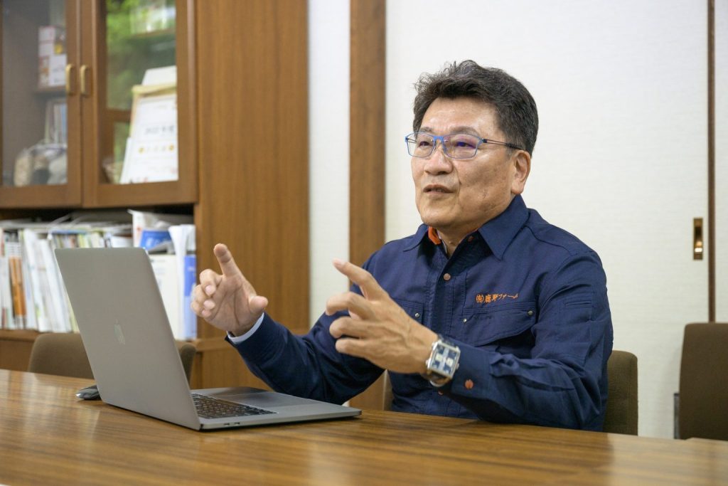 「農場から排出される豚の排泄物を堆肥化して、農協と連携して農場の中に堆肥センターを設けるなど、近隣農家の土づくりに一役買っています。1991(平成3)年からは地域の稲作農家と稲わら交換事業をスタート。当社で育てている黒毛和牛のエサにする稲わらをもらい、田んぼには堆肥をまいています。2005(平成17)年には、豚の排泄物を利用した地下設置型のバイオガスプラントを県内で初めて稼働。2018(平成30)年以降は全量を売電しています。また、豚の尿を真水にする浄化槽も設置し、豚舎の洗浄などに再利用しています。」
