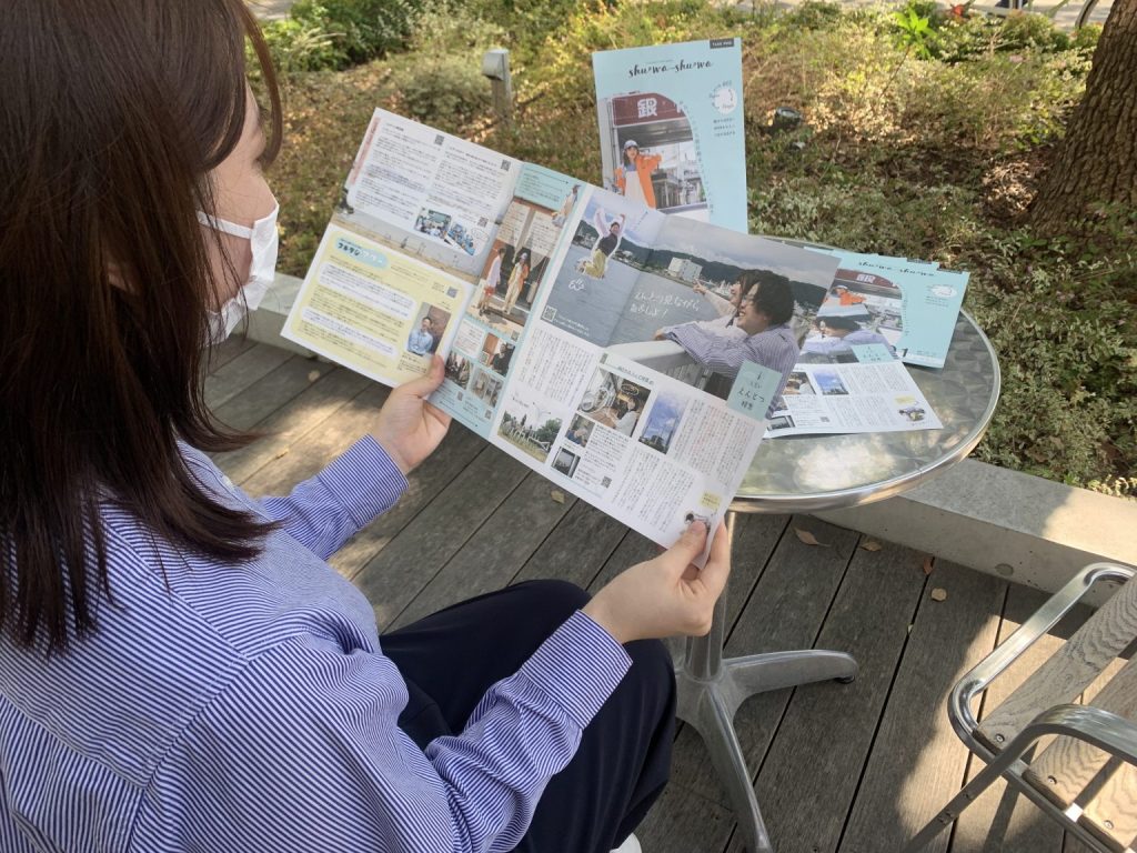 shu・wa – shu・wa [ シュワシュワ ] は、周南市シティプロモーション課が発行するフリーペーパーです。制作は、本市のシティプロモーションを考えるクリエイティブグループ「SHUラボ」のメンバーのうち、市の魅力を伝えるひとつの手法としてフリーペーパーを制作したい!と集まった、20~50 代メンバー全 7名でおこないました。地道な会議を重ね、また、多数の方に取材を重ね、満を持して令和3年10月1日、創刊号を発行いたしました。