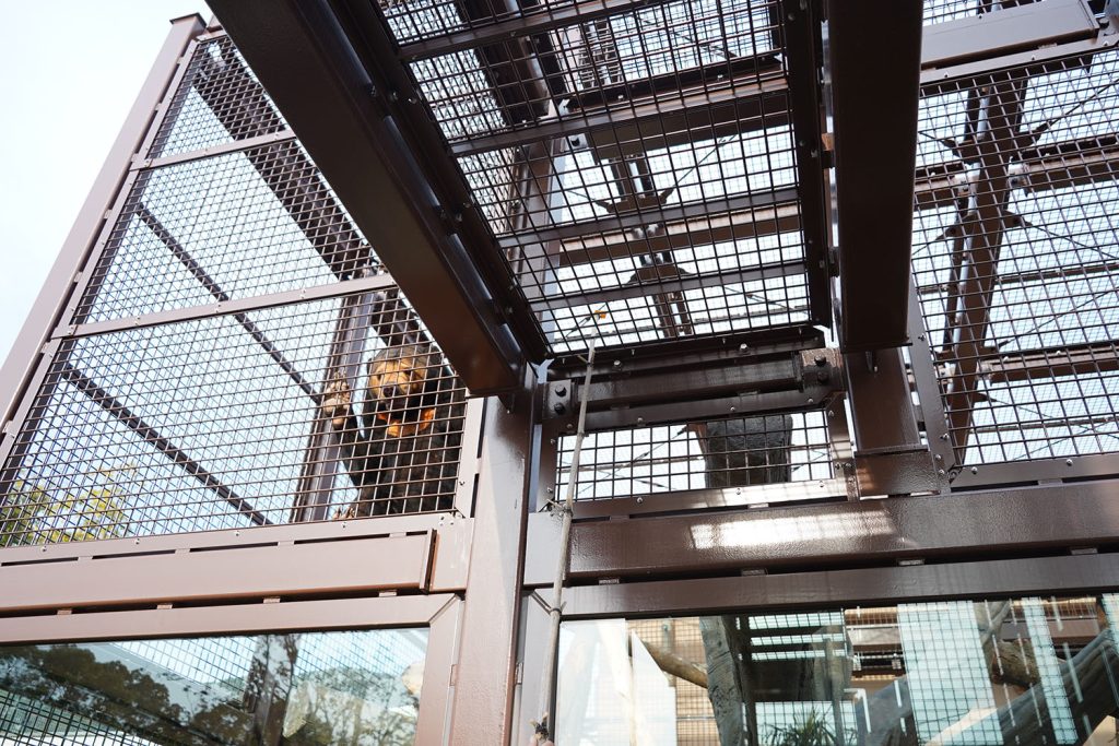 大きい空間と小さな空間を空中でつなげ、マレーグマを下から観察できるようになります。樹の上と地上を行き来する、マレーグマのいきいきとした姿を楽しめる、広々とした空間です。