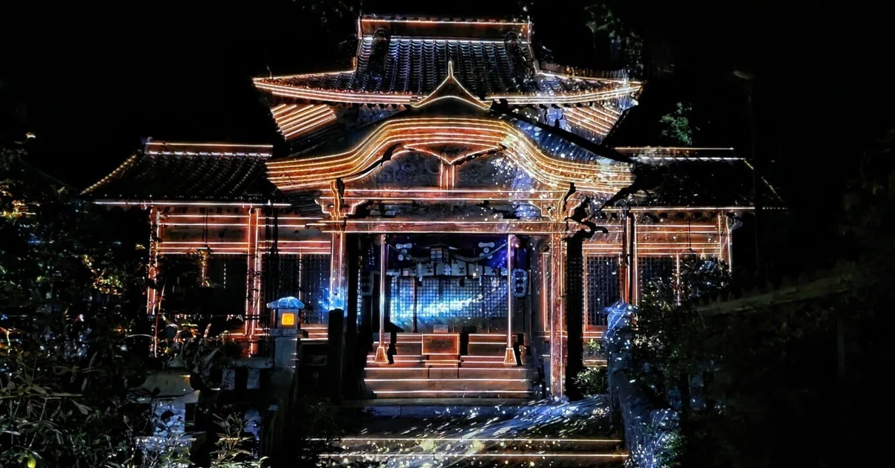 鹿野の秋の夜、再び輝く。鎮守の杜が照らされる、かの’nこと清流Fes.